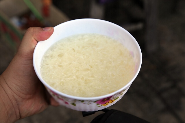 我们在喀什的集市上品尝了当地的自制酸奶,每户的酸奶都有不一样的味道。但是统一的是碗的表面一定要有一层厚厚的奶皮子,如果不加糖,原味会有些酸。我们一边喝一边呲着牙,当地人笑着说:“这才是那个正宗的味道!”
